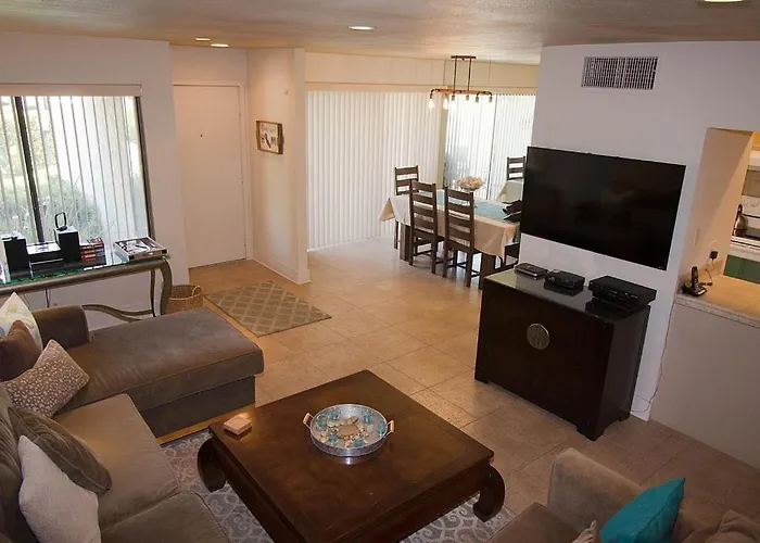 A fully furnished kitchen is equipped with coffee and tea making facilities, as well as a refrigerator, an oven, and kitchenware for self-catering purposes. Tennis On El Paseo At Sandroc Permit# Str2023-0030 is around a 10-minute stroll from Town Center & Hahn bus station. A range of activities, such as bowling, mini golf, and cycling are offered in the area.
